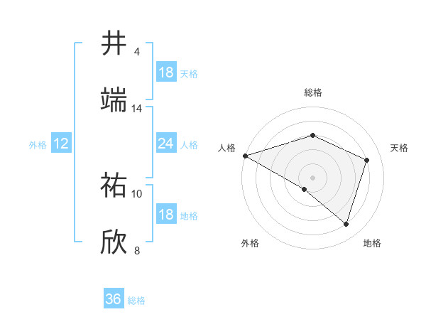 井端 祐欣さんの天格は18画の4点!