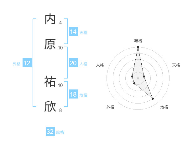 内原 祐欣さんを姓名の画数から五運を鑑定