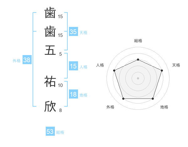 歯歯五 祐欣さんの総格は53画の3点!
