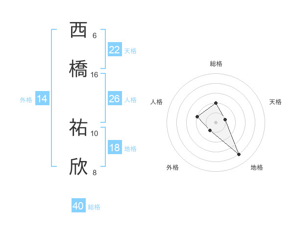 西橋 祐欣さんを姓名の画数から五運を鑑定