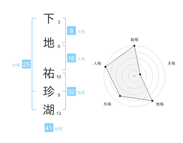 下地 祐珍湖さんを姓名の画数から五運を鑑定