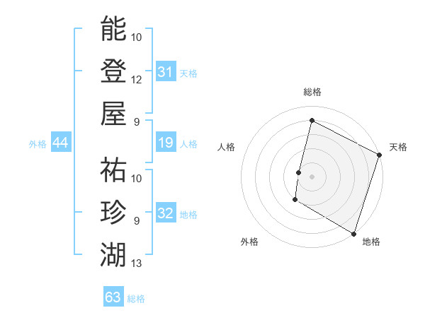 能登屋 祐珍湖さんを姓名の画数から五運を鑑定