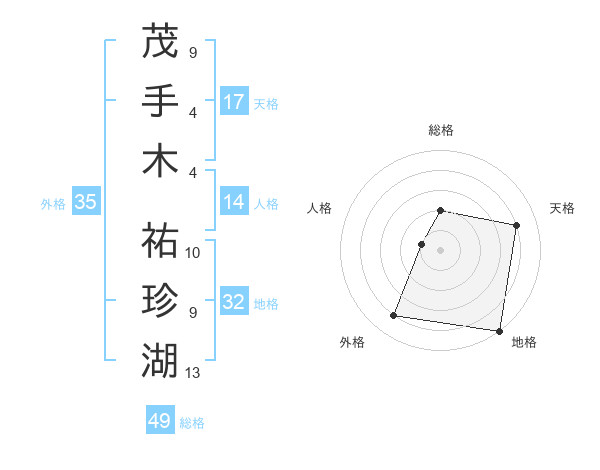 茂手木 祐珍湖さんの天格は17画の4点!