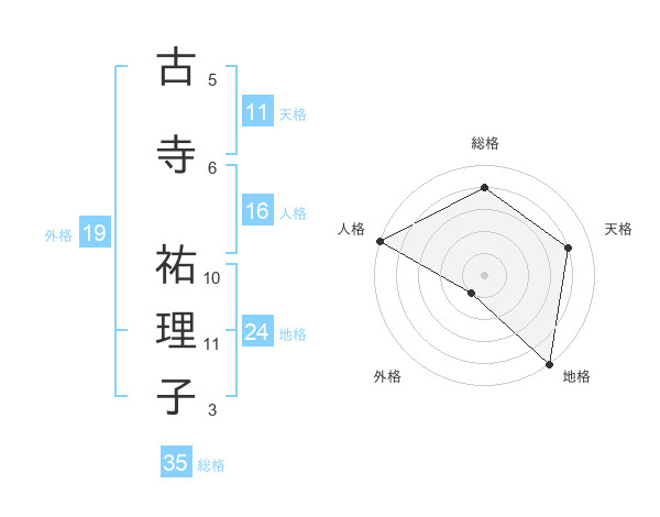 古寺 祐理子さんを姓名の画数から五運を鑑定