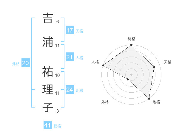 吉浦 祐理子さんを姓名の画数から五運を鑑定