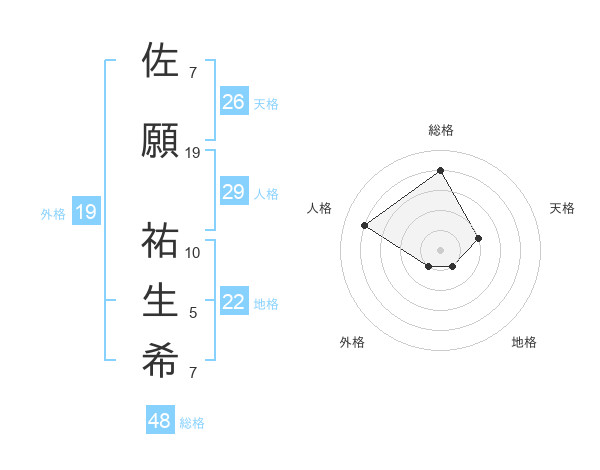 佐願 祐生希さんを姓名の画数から五運を鑑定