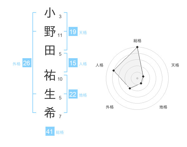 小野田 祐生希さんの総格は41画の5点!
