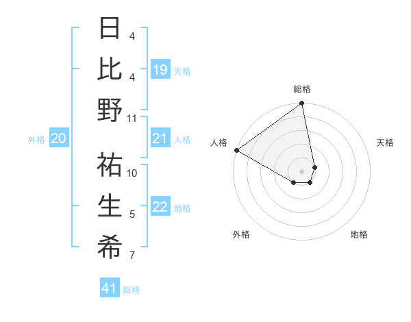 日比野 祐生希さんの総格は41画の5点!