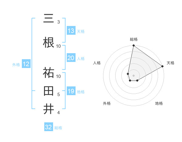 三根 祐田井さんを姓名の画数から五運を鑑定