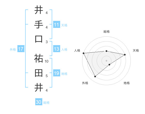 井手口 祐田井さんを姓名の画数から五運を鑑定