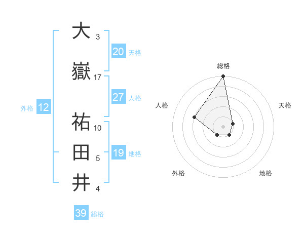 大嶽 祐田井さんを姓名の画数から五運を鑑定