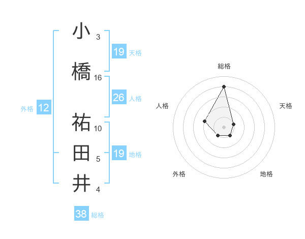 小橋 祐田井さんを姓名の画数から五運を鑑定