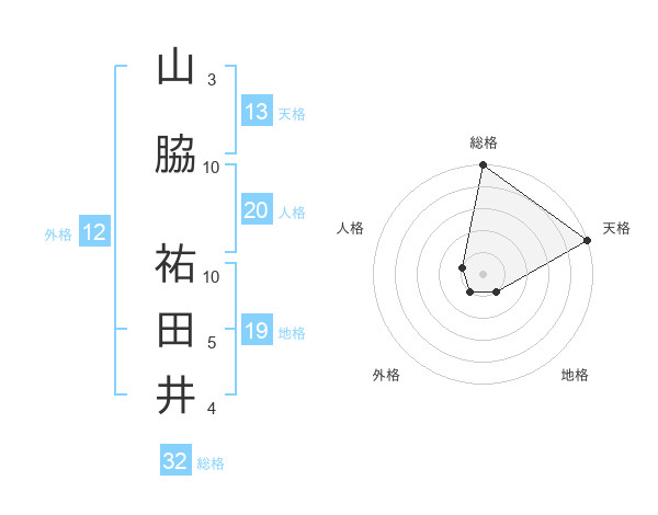山脇 祐田井さんを姓名の画数から五運を鑑定