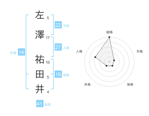 左澤 祐田井さんを姓名の画数から五運を鑑定