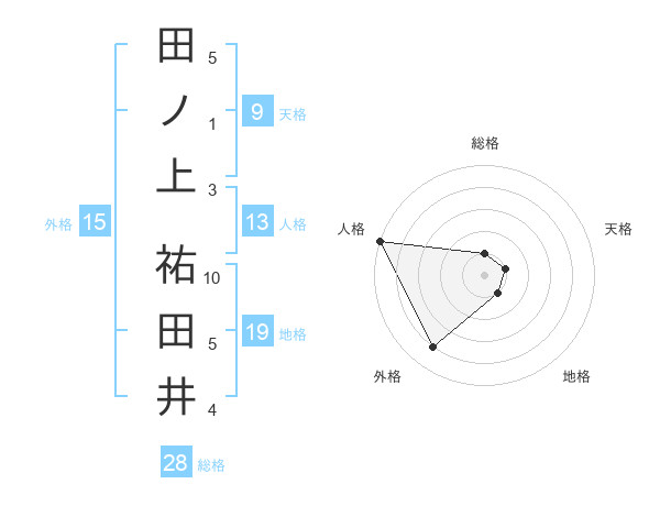 田ノ上 祐田井さんを姓名の画数から五運を鑑定