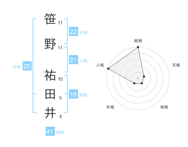 笹野 祐田井さんを姓名の画数から五運を鑑定