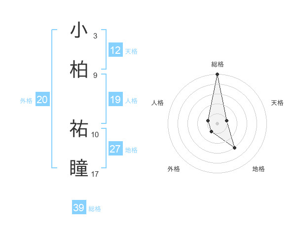 小柏 祐瞳さんの総格は39画の5点!