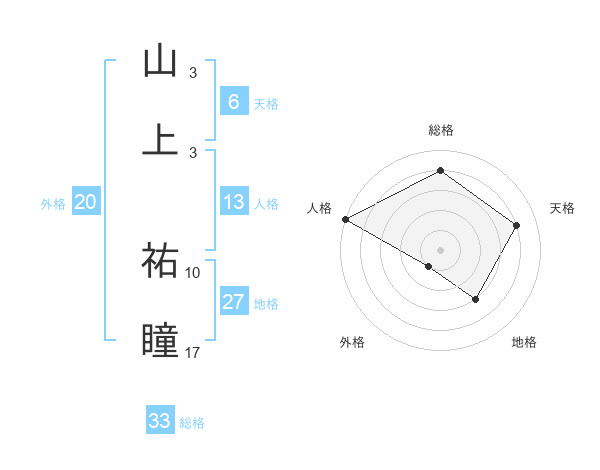 山上 祐瞳さんを姓名の画数から五運を鑑定