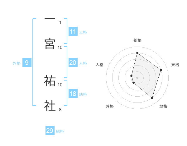 一宮 祐社さんを姓名の画数から五運を鑑定