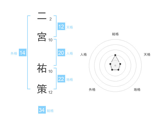 二宮 祐策さんの総格は34画の2点!