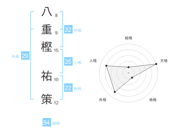 八重樫 祐策さんの総格は54画の1点!
