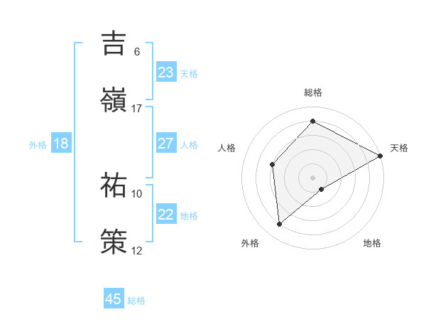 吉嶺 祐策さんの総格は45画の4点!