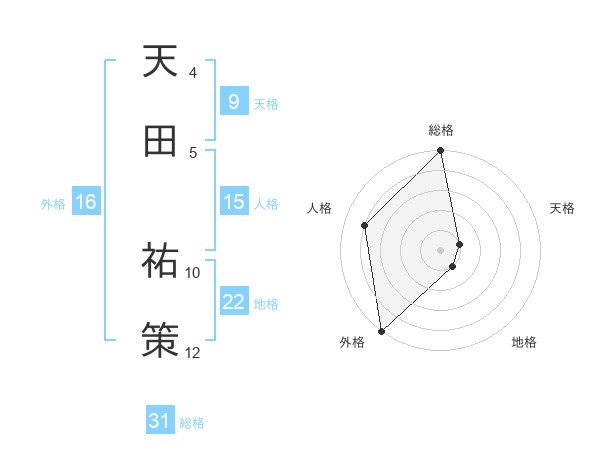天田 祐策さんの総格は31画の5点!