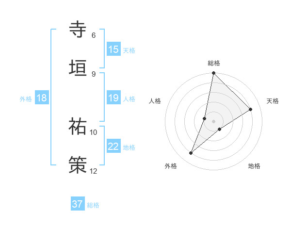 寺垣 祐策さんの総格は37画の5点!