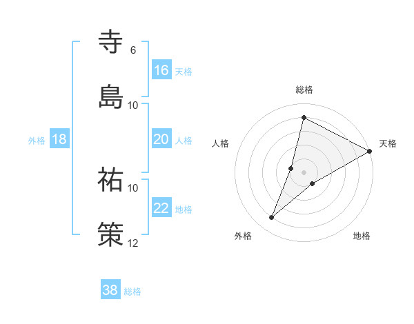 寺島 祐策さんの総格は38画の4点!