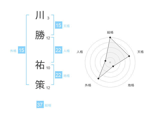 川勝 祐策さんの総格は37画の5点!