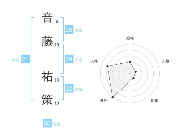 音藤 祐策さんの総格は50画の2点!
