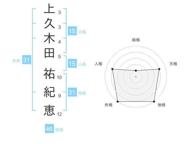 上久木田 祐紀恵さんを姓名の画数から五運を鑑定