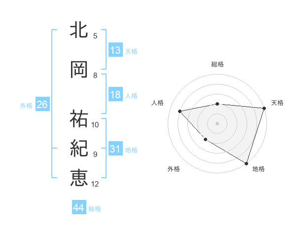 北岡 祐紀恵さんを姓名の画数から五運を鑑定