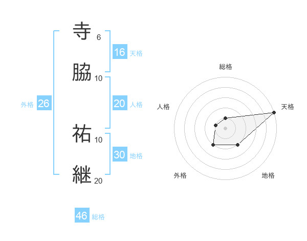 寺脇 祐継さんの総格は46画の1点!