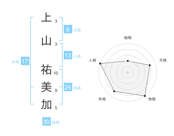 上山 祐美加さんを姓名の画数から五運を鑑定