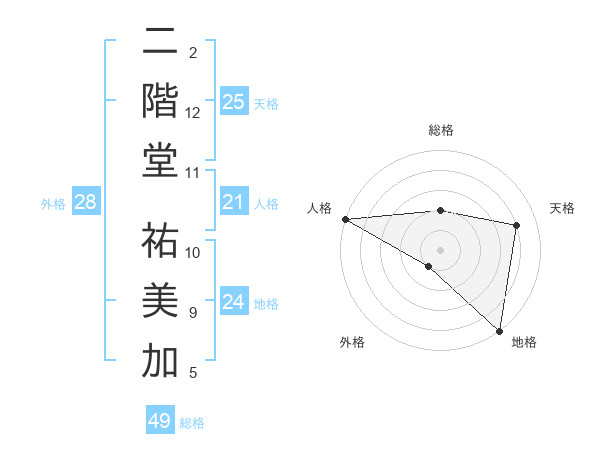 二階堂 祐美加さんを姓名の画数から五運を鑑定
