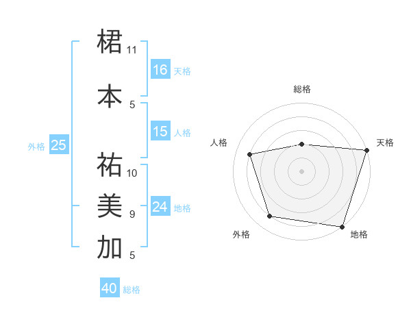 桾本 祐美加さんを姓名の画数から五運を鑑定