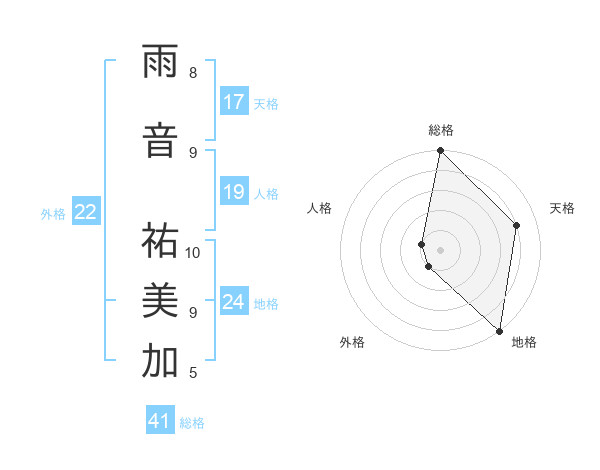 雨音 祐美加さんを姓名の画数から五運を鑑定