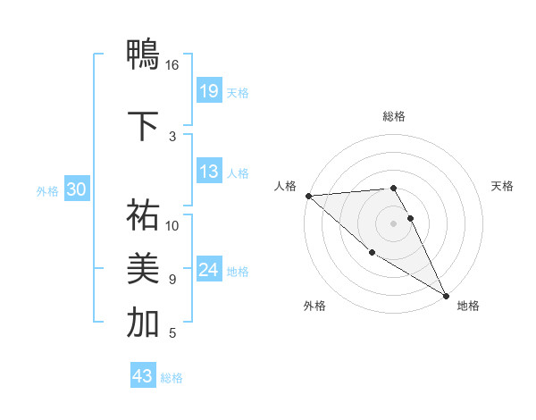 鴨下 祐美加さんの地格は24画の5点!