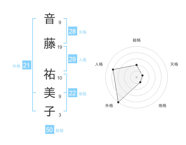 音藤 祐美子さんを姓名の画数から五運を鑑定