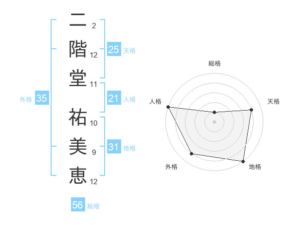 二階堂 祐美恵さんを姓名の画数から五運を鑑定