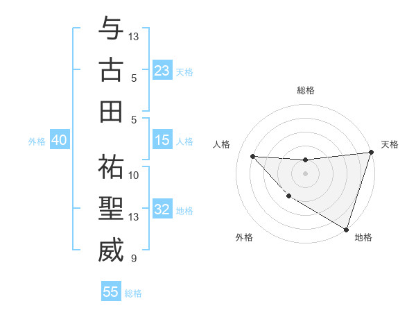 与古田 祐聖威さんを姓名の画数から五運を鑑定