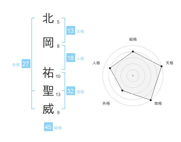 北岡 祐聖威さんを姓名の画数から五運を鑑定