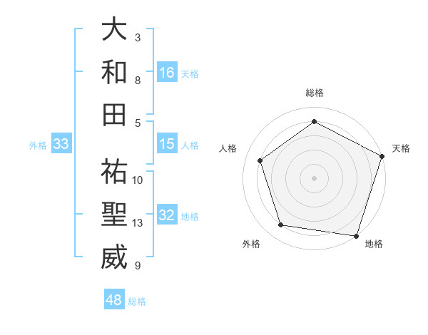 大和田 祐聖威さんを姓名の画数から五運を鑑定