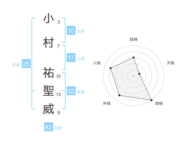 小村 祐聖威さんの総格は42画の3点!