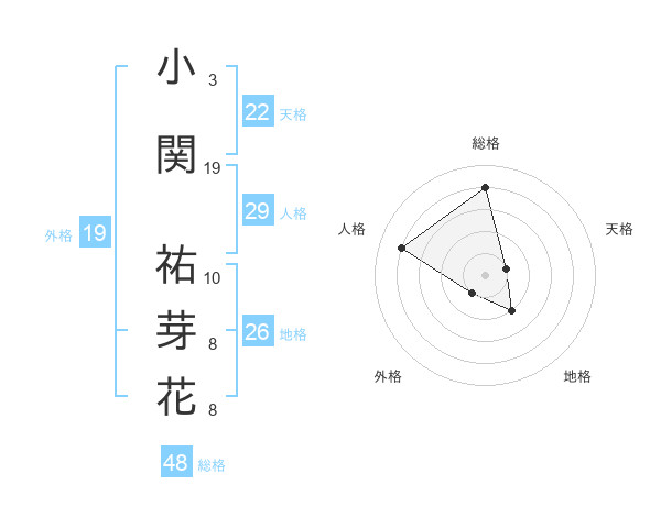 小関 祐芽花さんを姓名の画数から五運を鑑定
