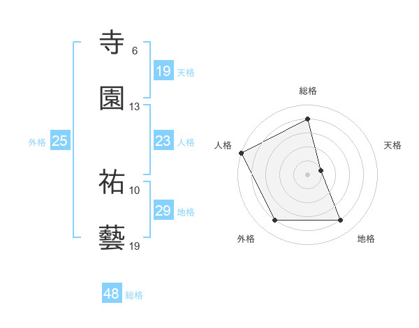 寺園 祐藝さんの天格は19画の1点!