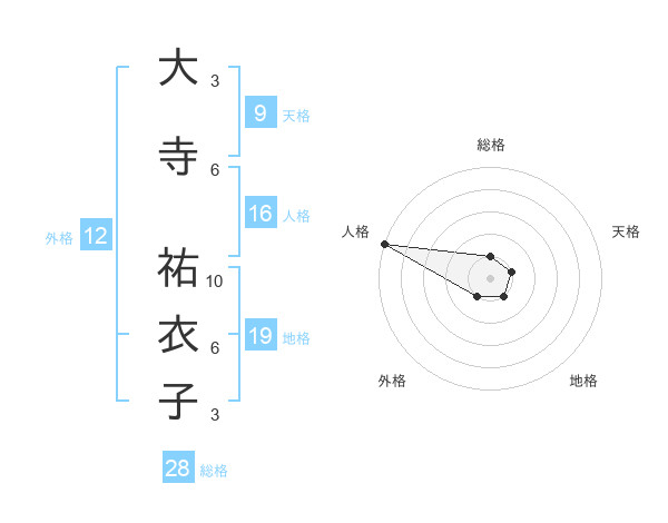 大寺 祐衣子さんの総格は28画の1点!