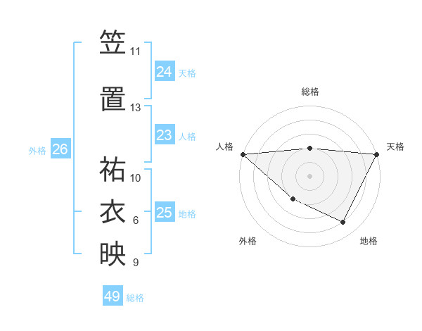 笠置 祐衣映さんを姓名の画数から五運を鑑定
