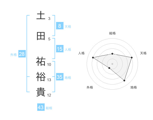 土田 祐裕貴さんを姓名の画数から五運を鑑定